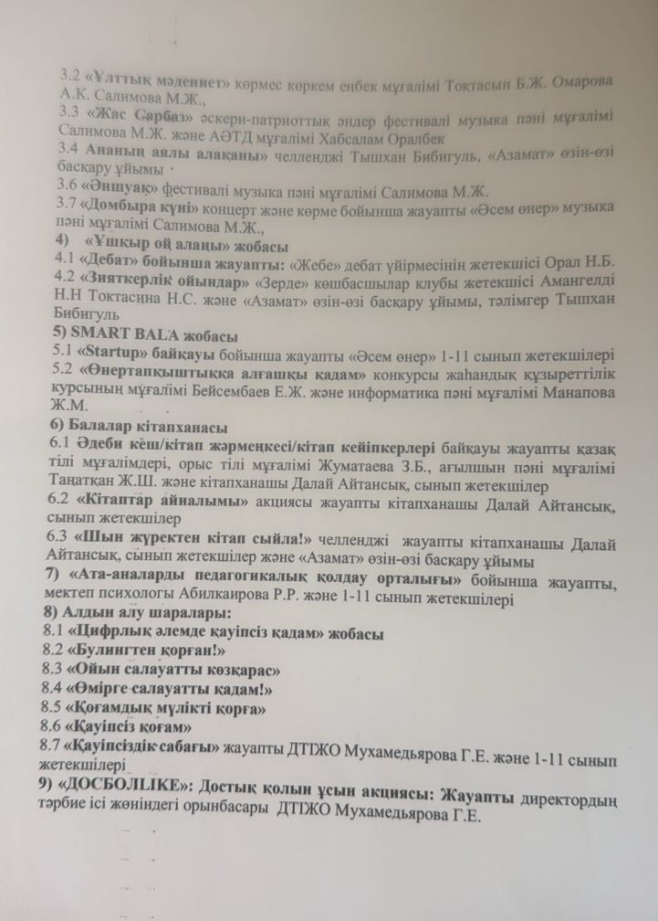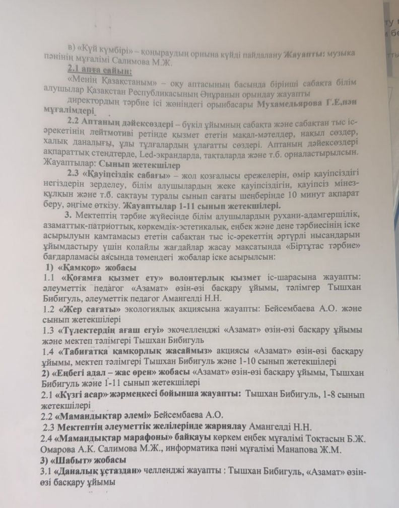 "Адал азамат" біртұтас тәрбие бағдарламасын жүзеге асыру туралы бұйрық