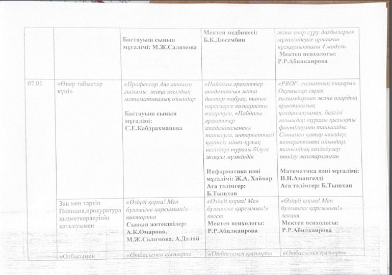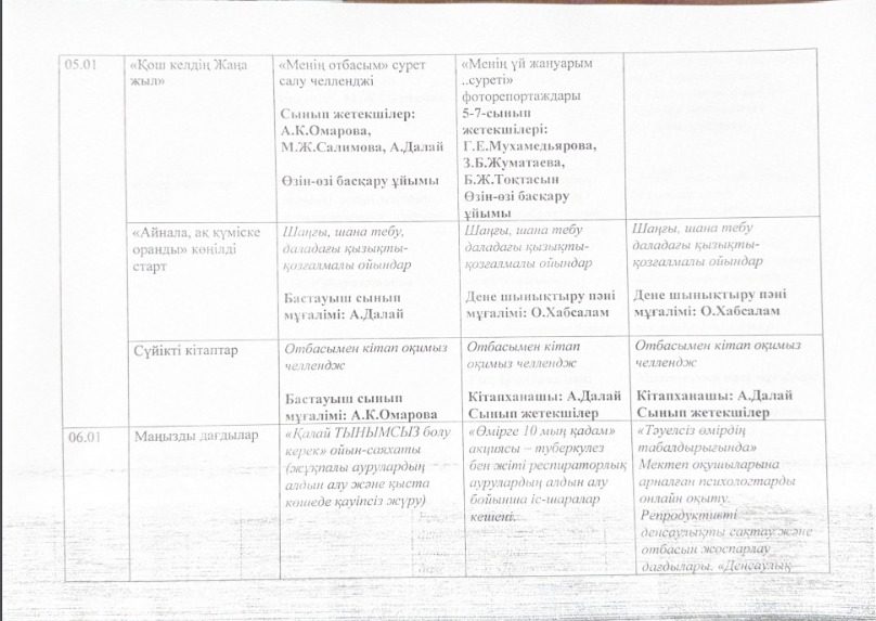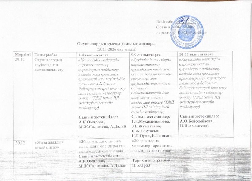 Қысқы демалыс жоспары