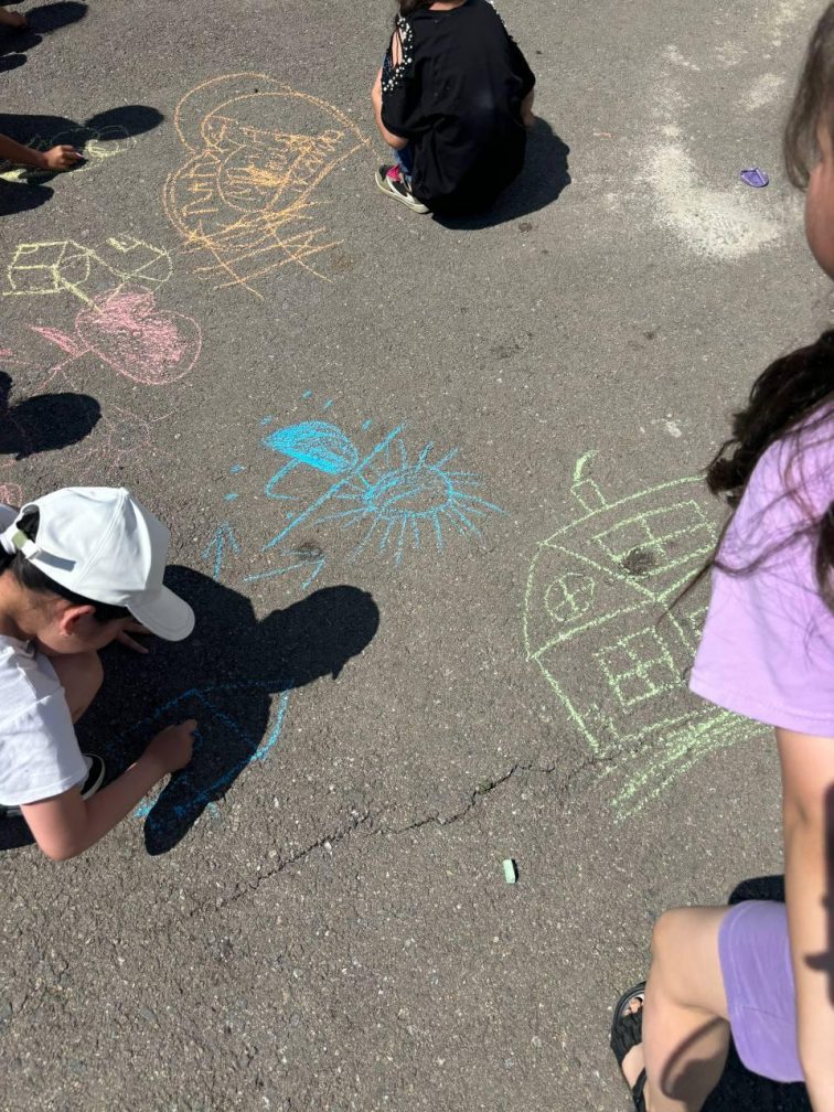 "Бояулар құпиясы" тақырыбымен лагердің бір күні өтті. Оқушылар мектеп алаңында түрлі-түсті борлармен суреттер салды.